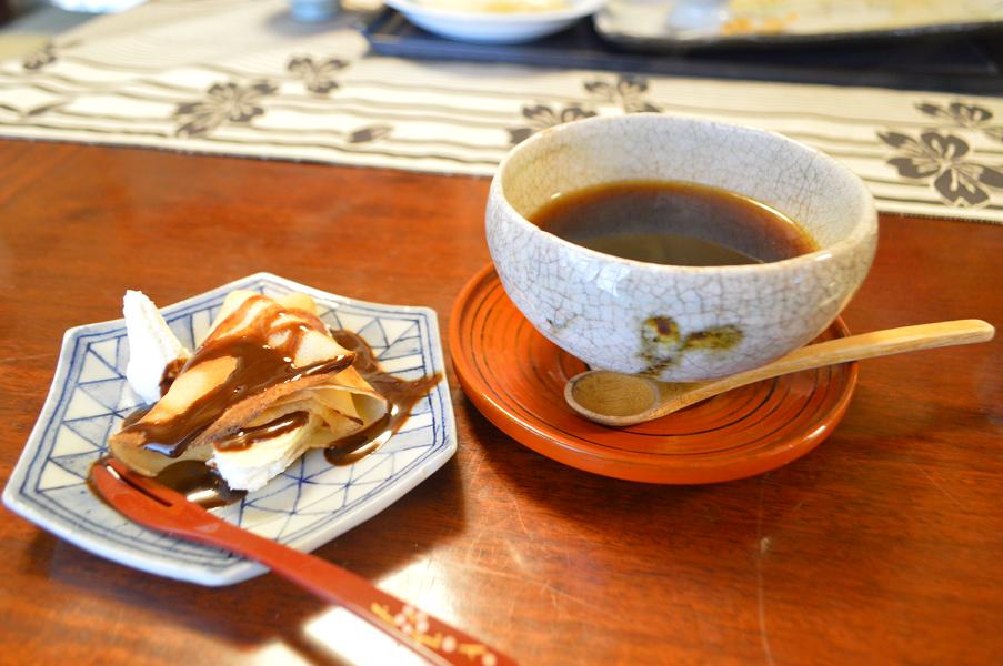 食後のチョコバナナクレープと珈琲♪