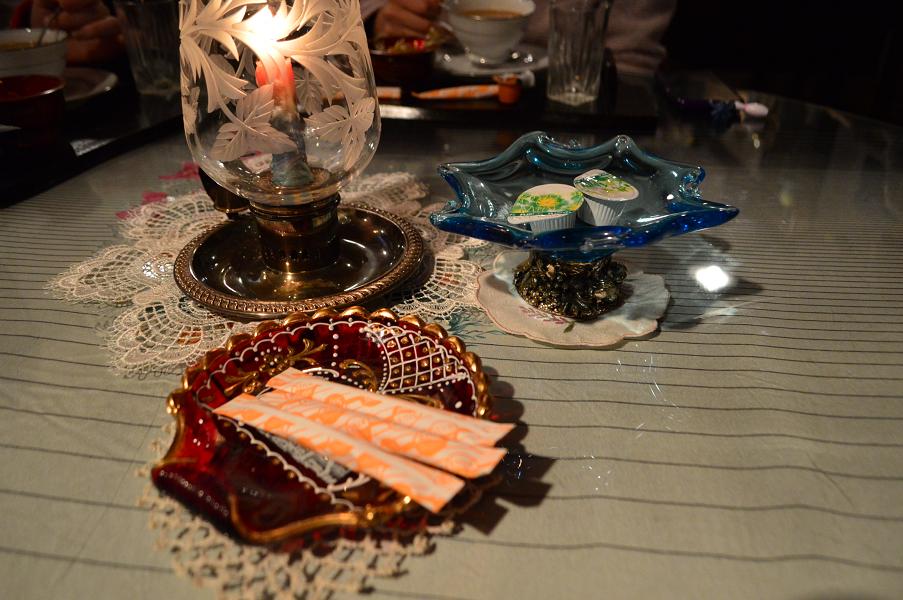 おかあさんがなにやら持ち出してろうそくに火をつけて…